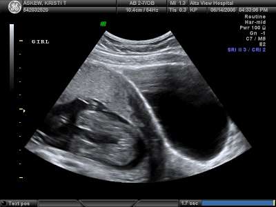 When we went in for our ultrasound, the radiology technician put the ultrasound device on Kristi's belly and immediately was shown our little girl's girly parts. Dan and Kristi were both glad she wasn't being modest. The rest of the ultrasound was even that much better knowing she was a she. |