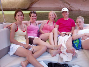 Summer, Kristi, Lindsi, Nicole, and Kelly enjoy the spacious boat and have some girl time. |