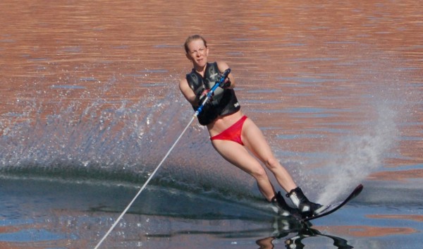 Lindsi skiing and loving every minute of it! She's a great waterskiier. |