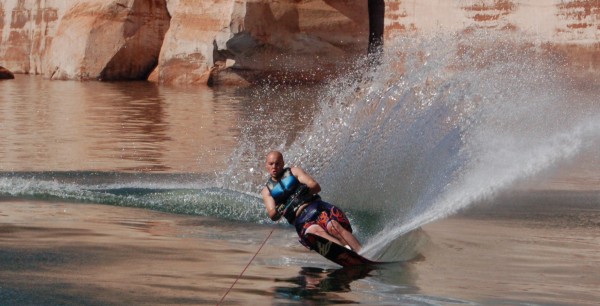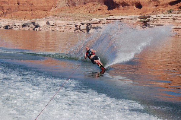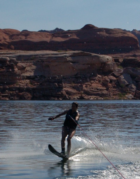 Kent is another natural on the skis. Ever since he was 6 weeks old, his family has been coming to Lake Powell. He loves boating and skiing, can you tell? |