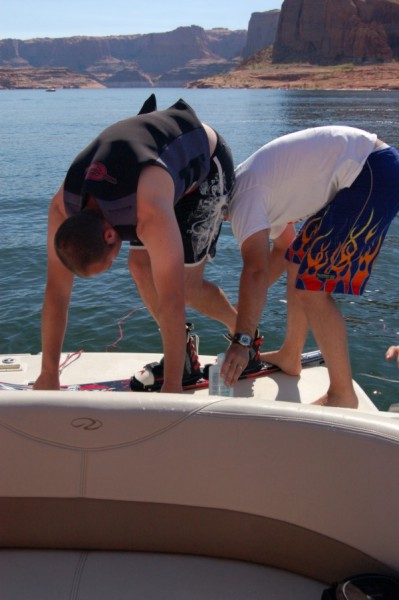 Lake Powell June 2006 was a blast! After two trailer tires blowing, running out of gas once, and one boat engine overheating all on the first day, we finally set up camp 15 hours after leaving home!! The rest of the trip was an absolute blast! Kent and Nicole, Parker and Lindsi, Torry and Kelly, Erik and Summer, and Dan and Kristi in attendance. |