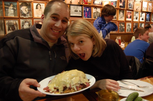 Kent and Nicole at Carnegie Deli for lunch. Now that's a pastrami sandwich!