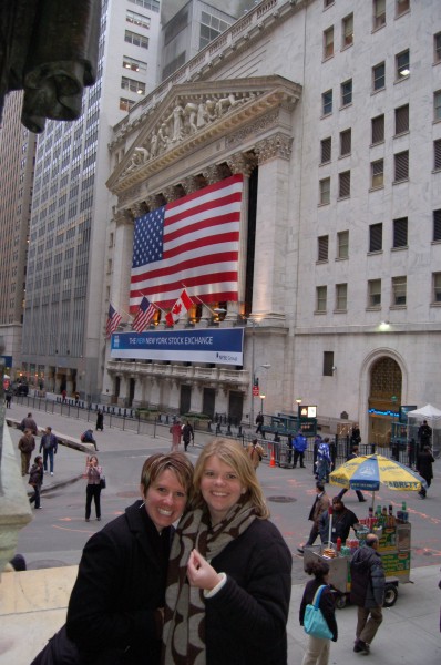 Kristi and Nicole on Wall Street next to the NYSE